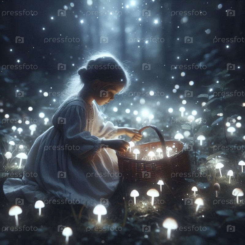 Девочка собирает звезды в корзине, Ai generated image