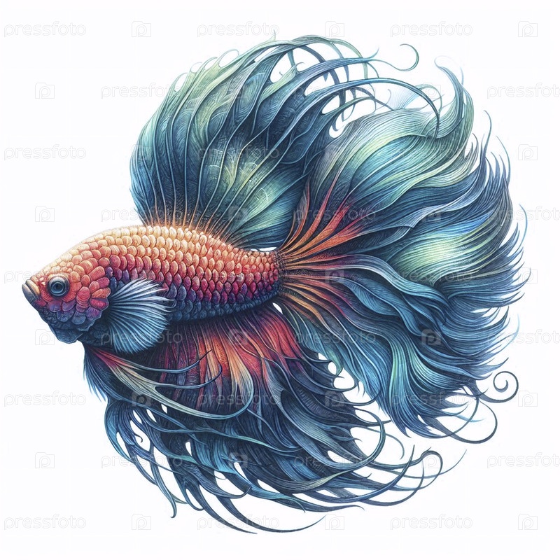 Tropical Fish чернила рисование художественная печать, Ai generated image A