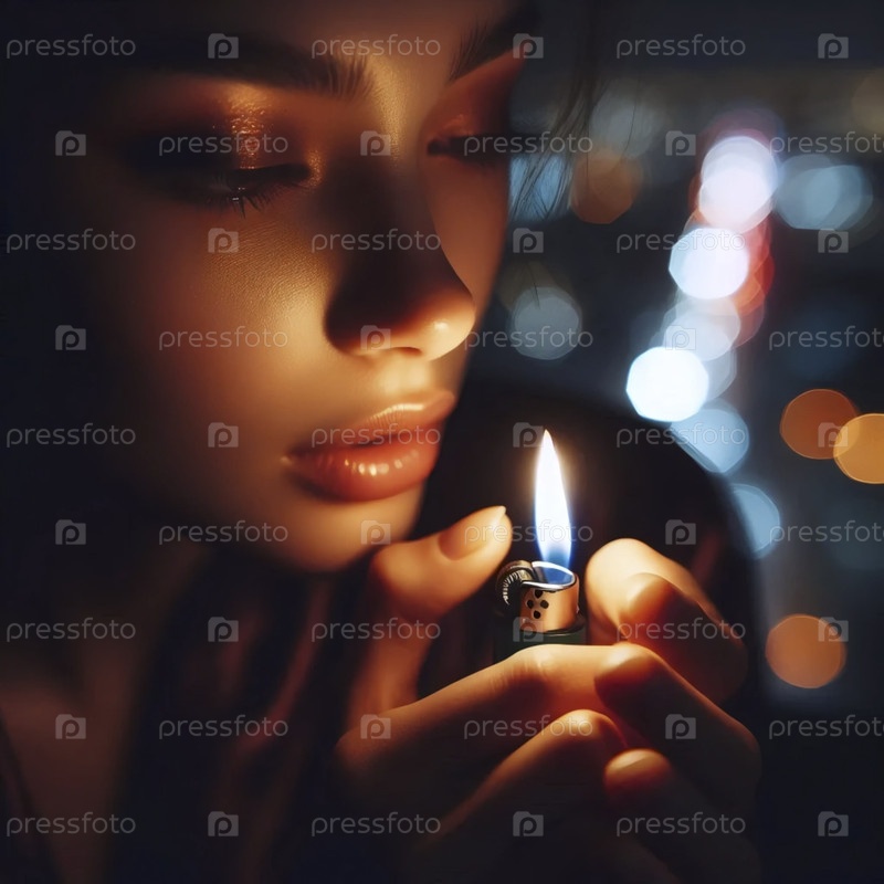 Близкий план пламени, освещающего ее лицо, Ай создала изображение