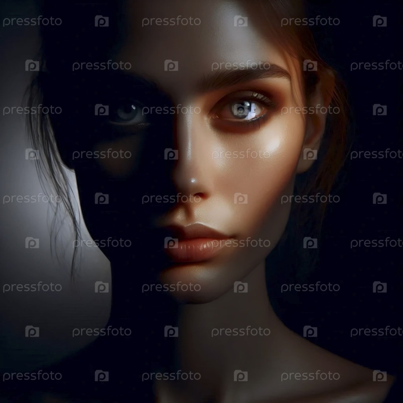 Портрет с полумакированным глазом в тени, глядя прямо на него, Ай создал изображение