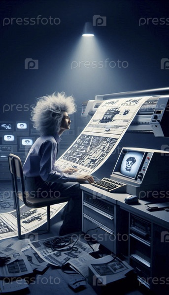 Компьютерный гений 1980-х годов с линейным принтером, Ай создал изображение