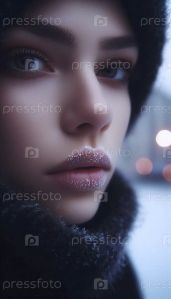 Замороженные губы крупный портрет, Ai generated image