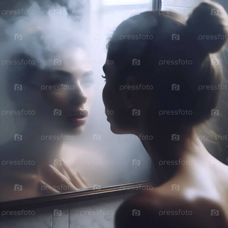 На более широком снимке, показывающем лицо в туманном зеркале с намерением шептаться, Ай создал изображение