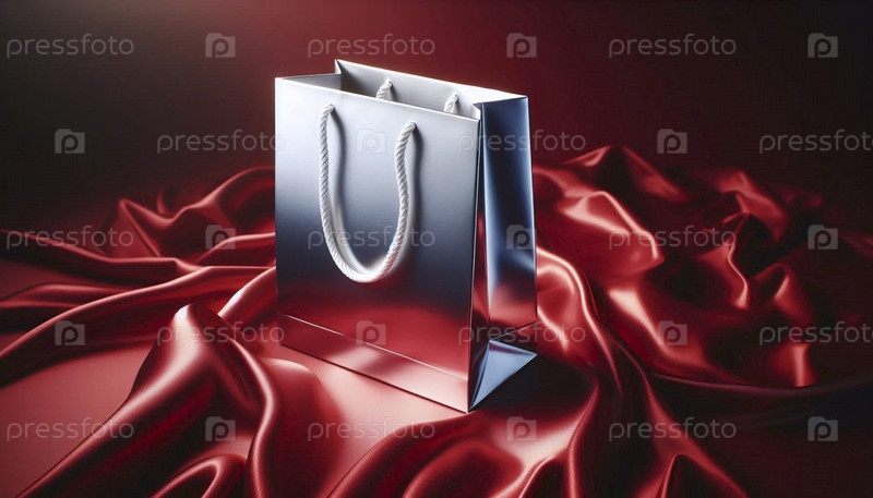 Мокет глянцевой готовой подарочной сумки с закрученными бумажными ручками, Ai generated image