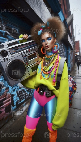Девушка 1980-х годов с бумбоксом, Ai generated image