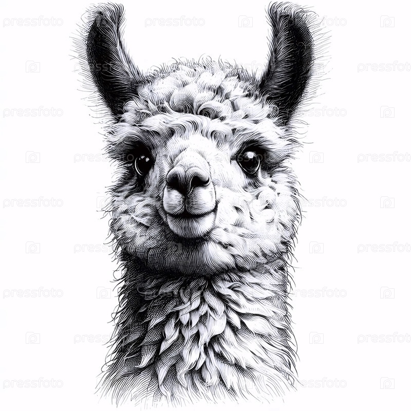 Curious Llama Calf чернила рисование арт-принт, Ai создал изображение
