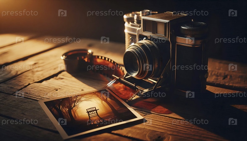 Винтажный пленочный фотоаппарат с одной фотографией, Ai generated image