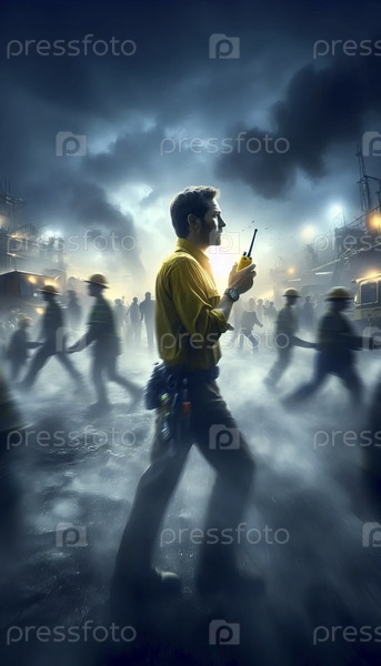 Более широкий, экологический акционный снимок, показывающий контекст хаоса, Ai создал изображение