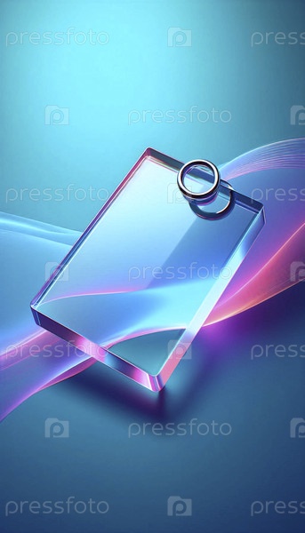 Прозрачный акриловый макет ключевого звена с металлическим кольцом на красочном градиентном фоне, Ai generated image