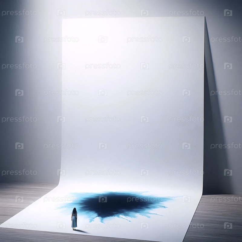 Женщина перед обширным листом бумаги с одним пятном, Ай создал изображение