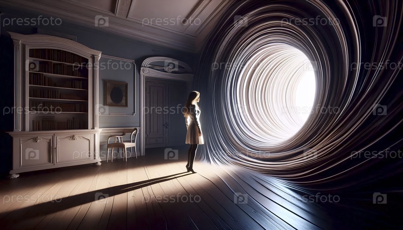 Женщина как эпицентр пространственного искажения, Ai создал изображение