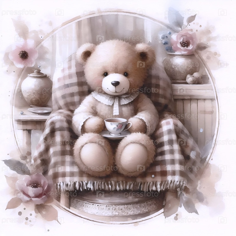Teddy Bear Having a Picnic Водяной художественный печат, Ай создал изображение