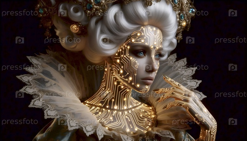 Кибербарокко портрет с золотой схемой, Ai generated image