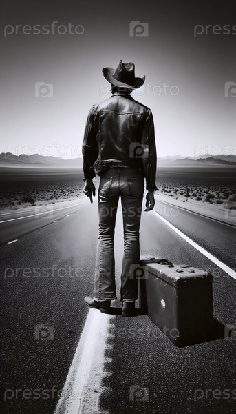 Автостопщик с гитарным чехлом, Ай создал изображение