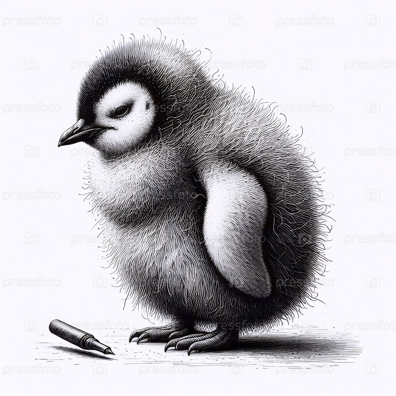Пингвинский цыпленок чернила A drawing art print, Ai generated image