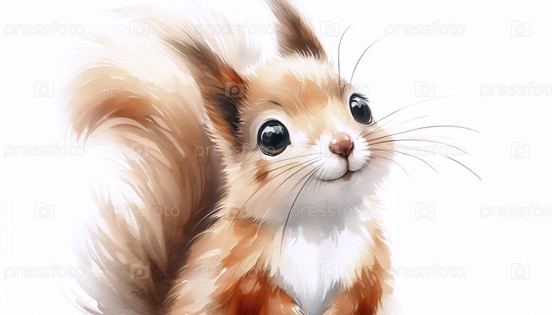А Sweet Squirrel акварельный художественный печат, Ai generated image