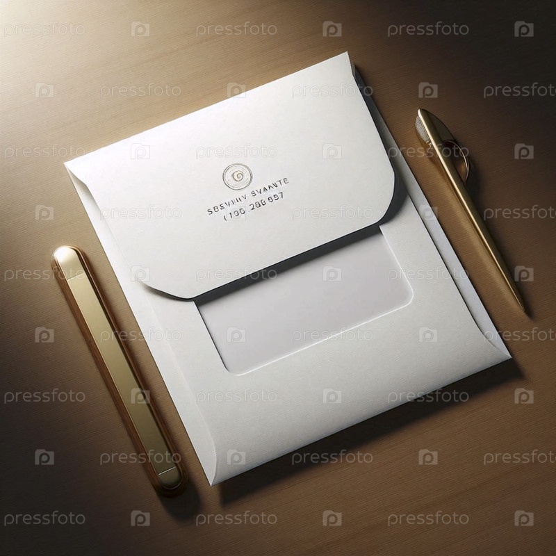 Стандартный макет белого бизнес-конверта с прозрачным окном адреса, Ai generated image