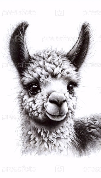 Curious Llama Calf чернила рисование арт-принт, Ai создал изображение