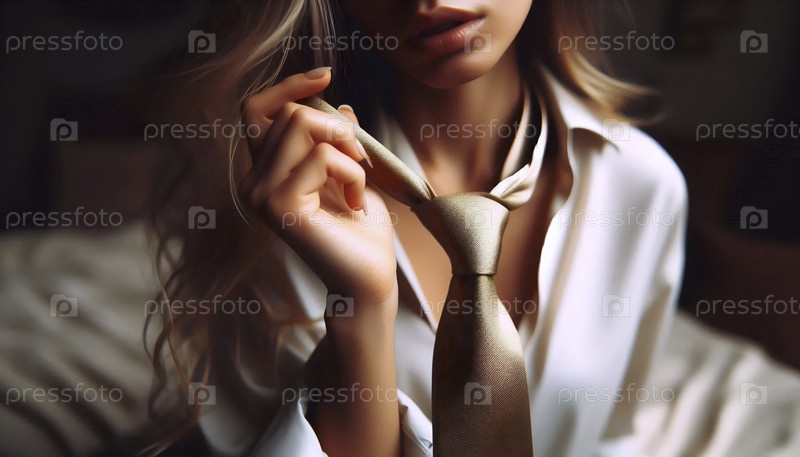 Женщина, свободно держащая мужской галстук, Ai generated image