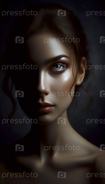 Портрет с полумакированным глазом в тени, глядя прямо на него, Ай создал изображение