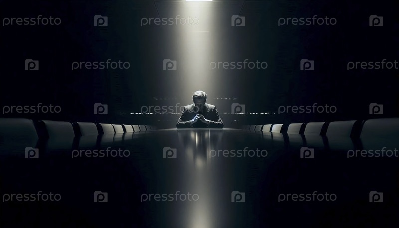 Более широкий снимок, показывающий изолированную фигуру за столом в контексте одиночества