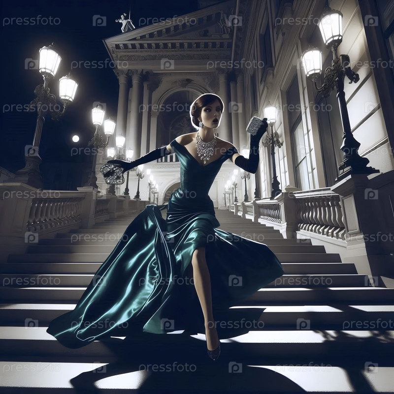 Хичкокский бриллиантовый вор убегает из оперного театра, Ai generated image