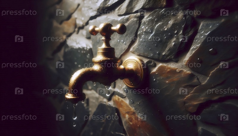 Мокет крана, установленный на стену из латуни на текстурированной сланцевой стене, Ai generated image