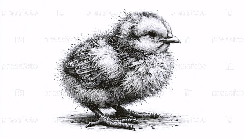 Chick ink drawing art print, Ай создал изображение А