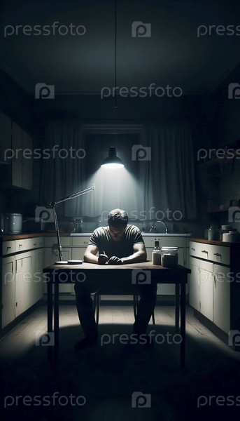Для более широкого снимка, показывающего всю сцену одинокой кухни, Ай создал изображение