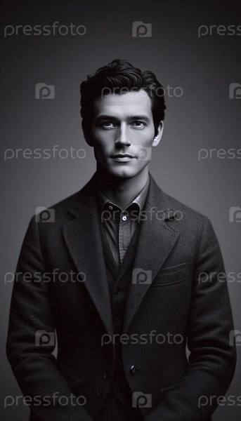 Классический портрет человека в темном куртке, Ai generated image