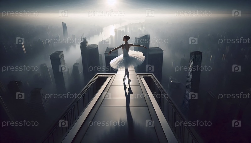 Балерина на крыше небоскреба, Ai generated image