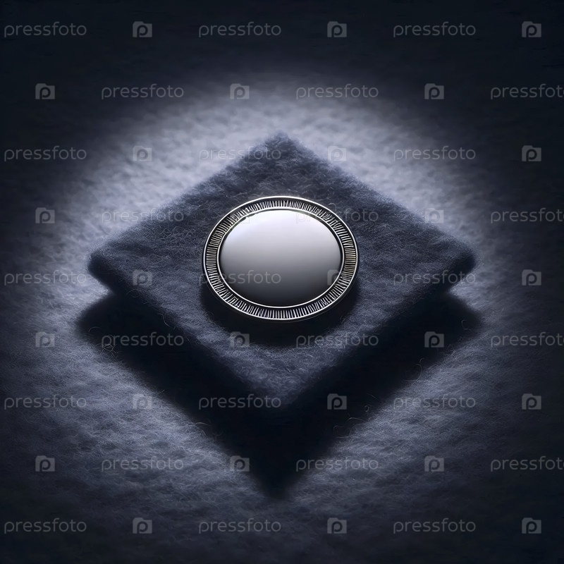 Круглый эмалированный макет булавки с обычной металлической границей, размещенная на шерстяной подушке, Ai generated image