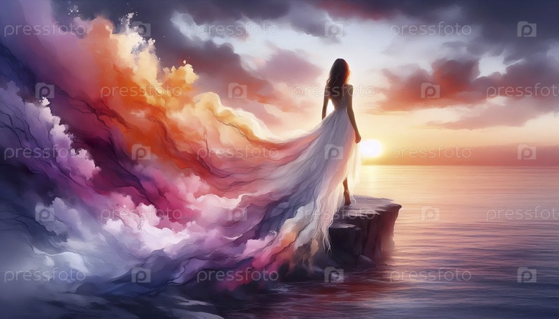 Платье, растворяющееся в акварельном закате, Ai generated image