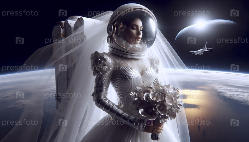 Космическая невеста с завесой перед Землей, Ай создала изображение