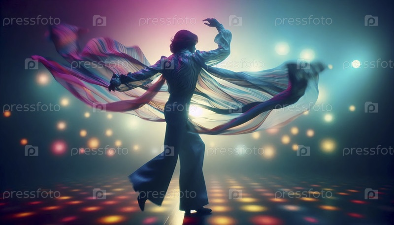 Динамичное и яркое кинематографическое захват потока эпохи диско, Ai generated image