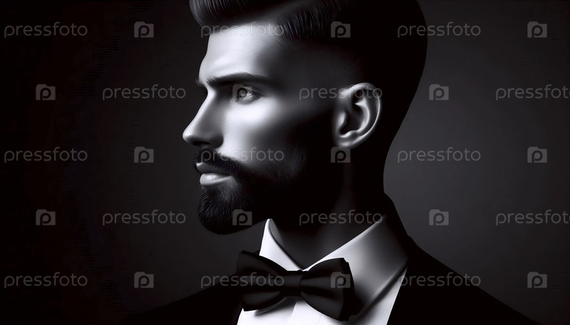 Профильный портрет с шелковым галстуком и бородой, Ai generated image