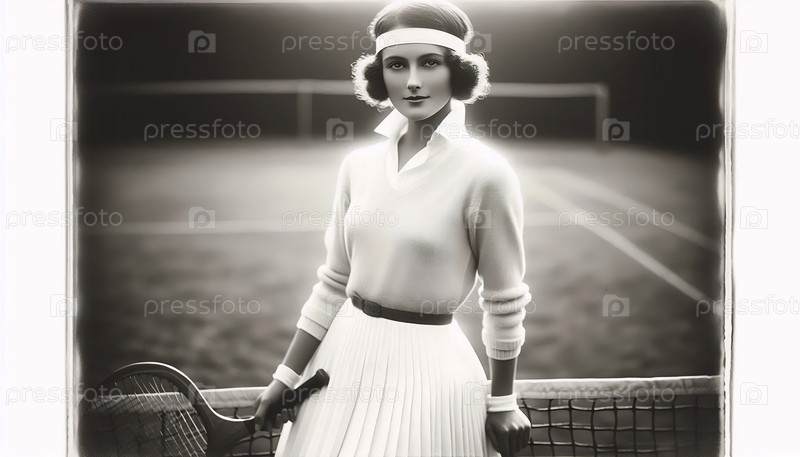 Теннисный игрок 1920-х годов в белом, Ai generated image