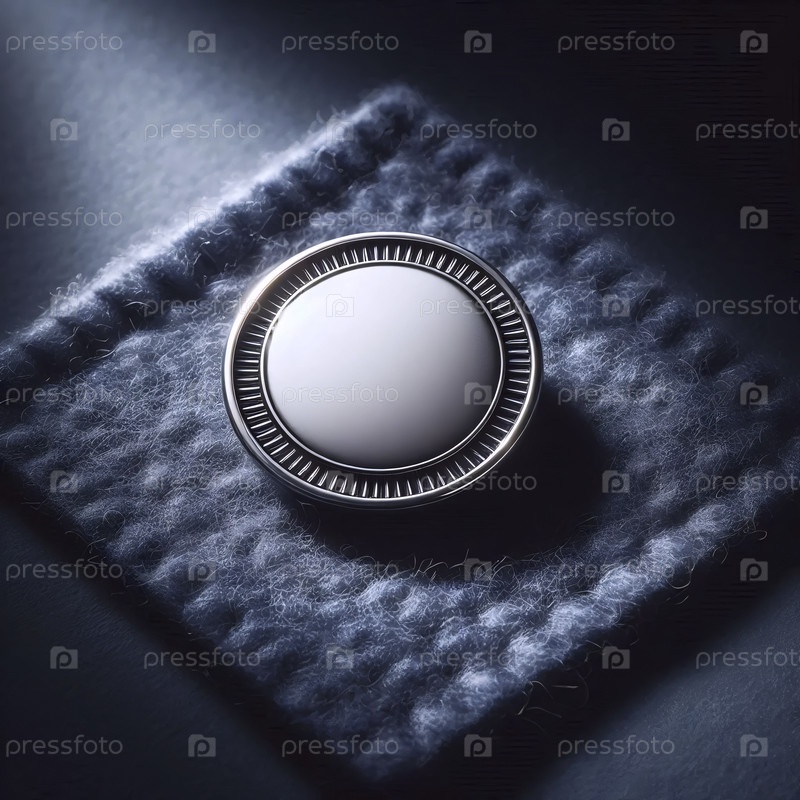 Круглый эмалированный макет булавки с обычной металлической границей, размещенная на шерстяной подушке, Ai generated image