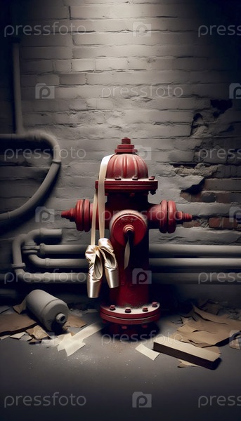 Обувь Pointe висит на пожарном гидранте за кулисами, Ai generated image