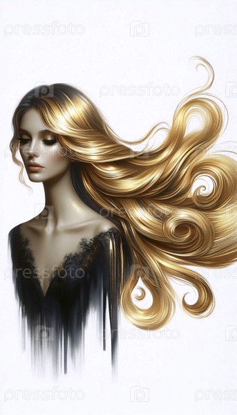 Женщина с золотыми волосами акварель, Ai generated image