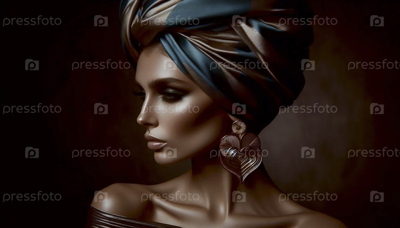 Женщина в шелковом тюрбане с серьгами, Ai generated image