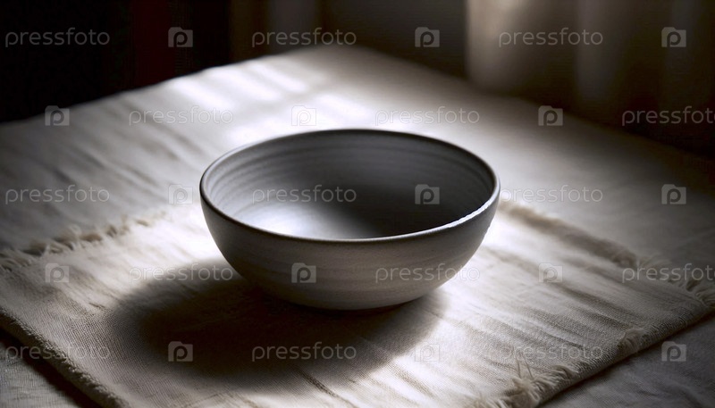 Глубокий мато-серый макет керамической чаши, пустой и размещенный на тканевом плацемате, Ai создал изображение