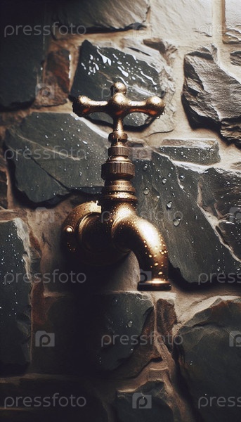 Мокет крана, установленный на стену из латуни на текстурированной сланцевой стене, Ai generated image