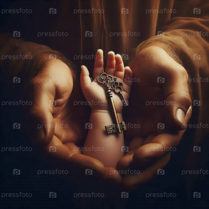 Более широкий, мягко освещенный портрет рук отца в колыбели руки ребенка, Ай создал изображение