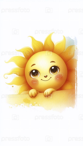 Curious Sun акварельный художественный печат, Ai generated image A
