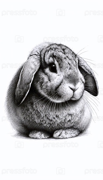Floppy-Eared A Bunny чернила рисование художественная печать, Ai сгенерированное изображение