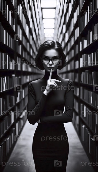 Таинственный библиотекарь в столбовых переходах, Ai generated image
