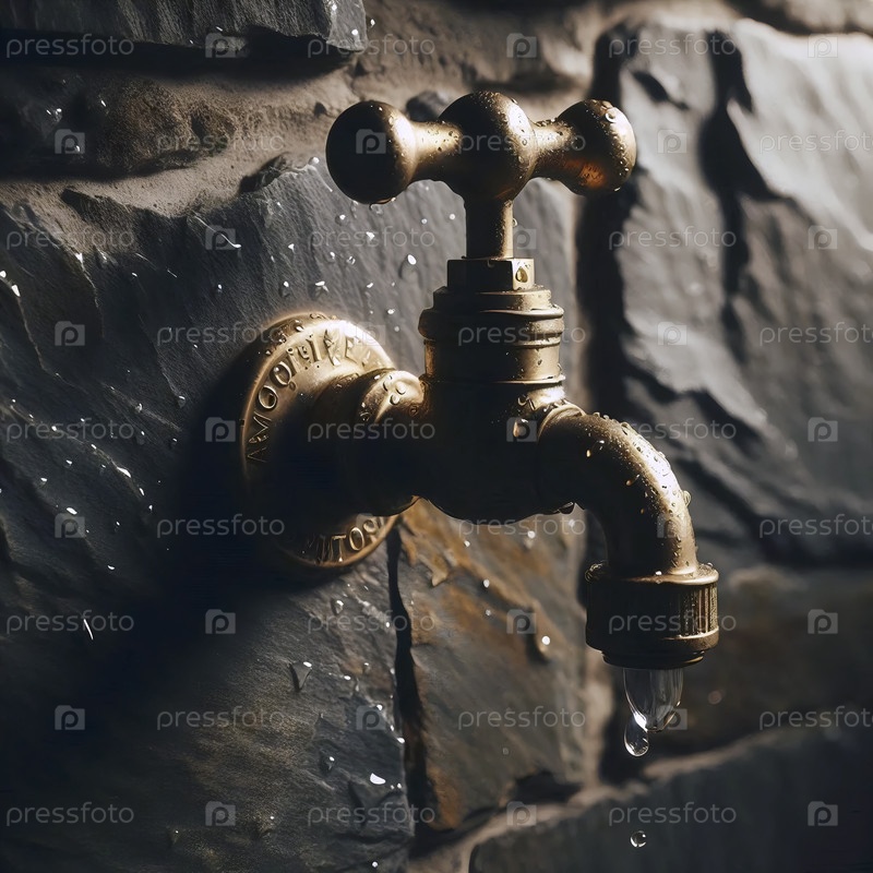 Мокет крана, установленный на стену из латуни на текстурированной сланцевой стене, Ai generated image