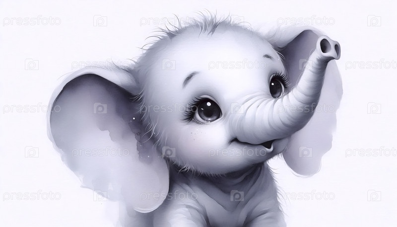 Очаровательный слон акварельный художественный печат, Ai generated image