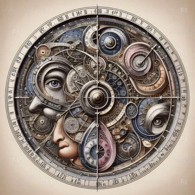 Сложное винтажное искусство часовой стрелки, Ai generated image